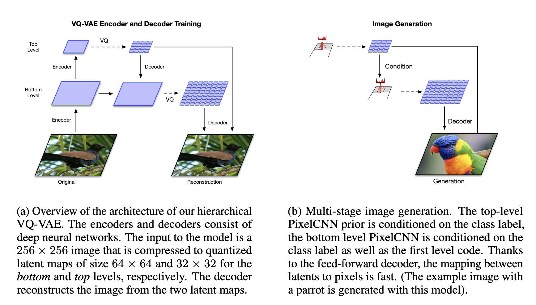 - First, the dVAE compresses images into a sequence of discrete image tokens, following the pipeline of VQ-VAE2 (with a larger codebook containing 819 tokens).